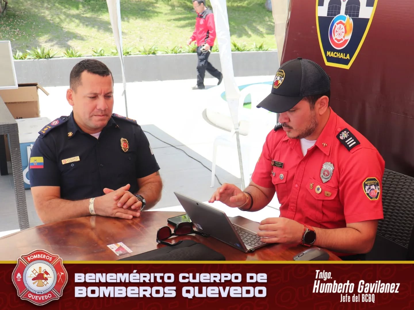 El Cmdt. Humberto Gavilánez, Jefe del Benemérito Cuerpo de Bomberos de Quevedo socializó junto al Cu ...